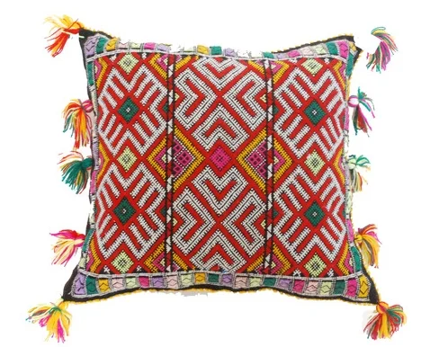 I can't get enough of these vintage Moroccan carpet cushions. They are the perfect add of juicy color and amazing pattern. I have them all over Peacock Pavilions. I adore these ones with the pom poms - very hard to find!