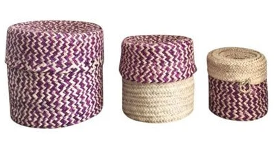 This trio of baskets is an M.Montague exclusive. They come in hot pink or deep blue. I use them to stash all manners of things in my office. I also keep succulents in them on my window sills. They add cool dimension to your shelves and are so very useful!