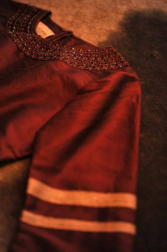 Hand beaded silk blouses.