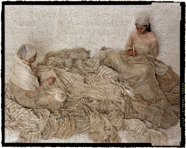 The world in which Lalla Essaydi lives is a complex one. She writes in her book, "I wish for my work to be as vividly present and yet as elusive as 'woman' herself -- not simply because she is veiled or turns away -but because she is still in progress."