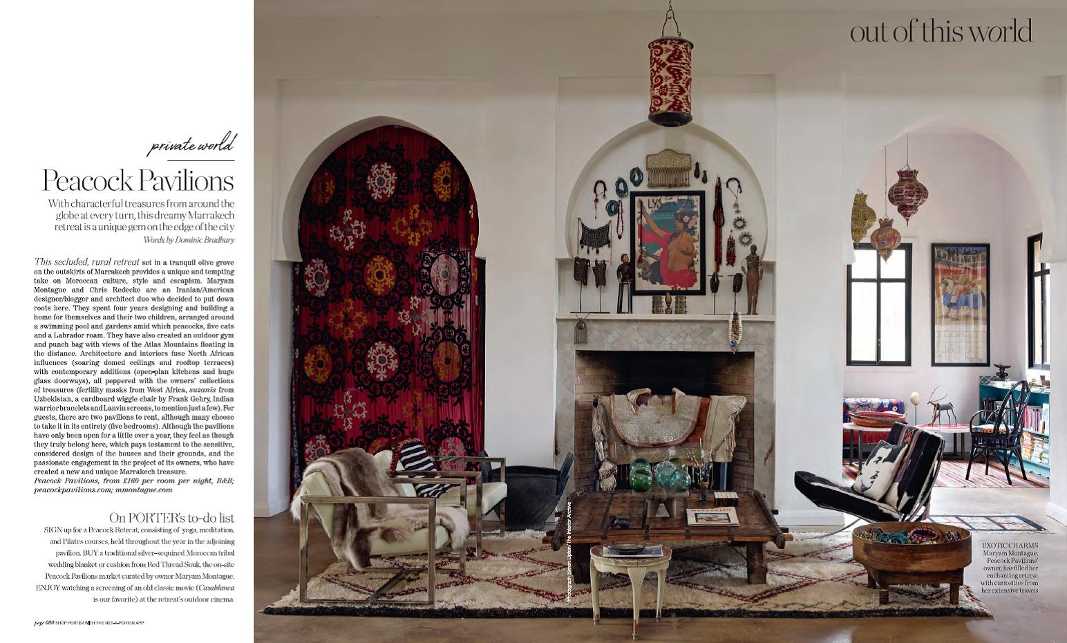 So it's a pinch-me thrill to be featured in Net-a-Porter's beautiful magazine, Porter. I'm so grateful to be included in not one, but two stories, one on Marrakech and another on Peacock Pavilions. Very thankful also for the kind words on passion project, Project Soar, and on my online boutique, Red Thread Souk.