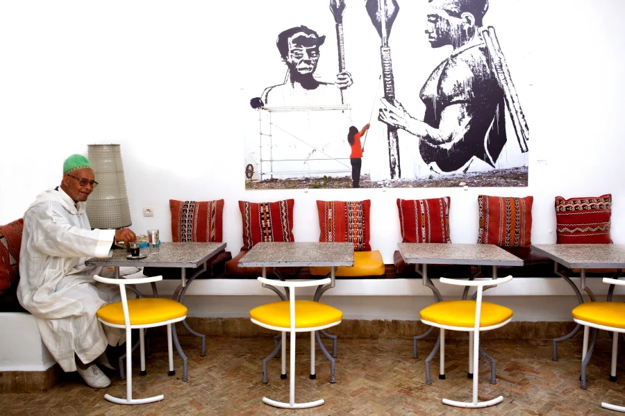 Cafe Kessabine has a view onto the main square where you can witness the famed hustling and bustling. Hike up to the top terrace for the best viewing! There are indoor and outdoor seating options at which to enjoy simple Moroccan meals. The vibe is super casual.